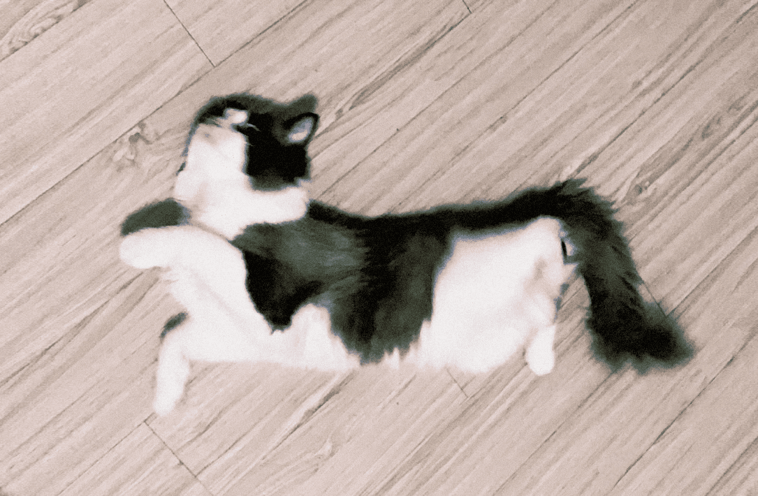 Here’s Cotton! He is two years old and has the softest, roundest face. He’s calm and gentle, never scratches, always runs ahead of me and lies down, waiting to be petted.