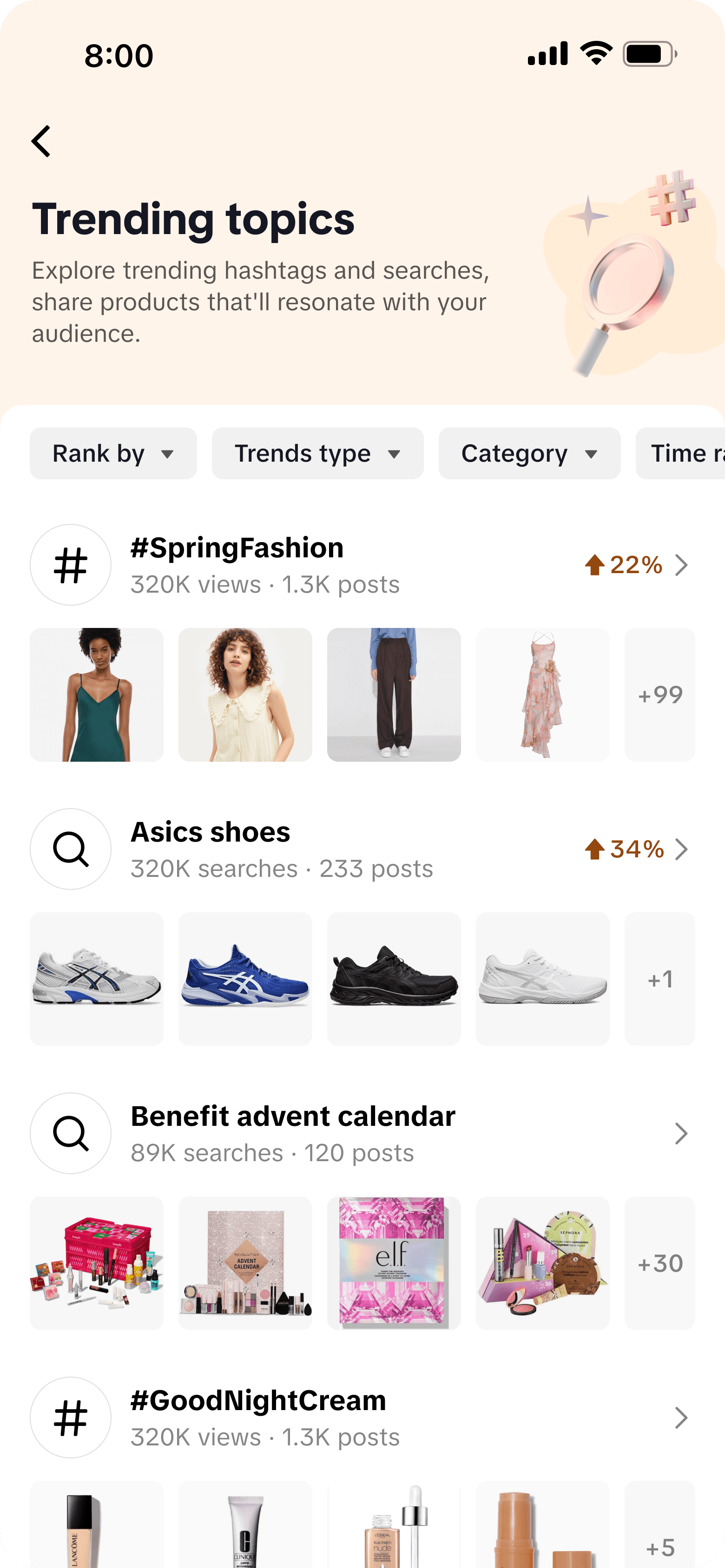 Filter and surface only trends that are directly linked to products, help user save time on shoppable topics.