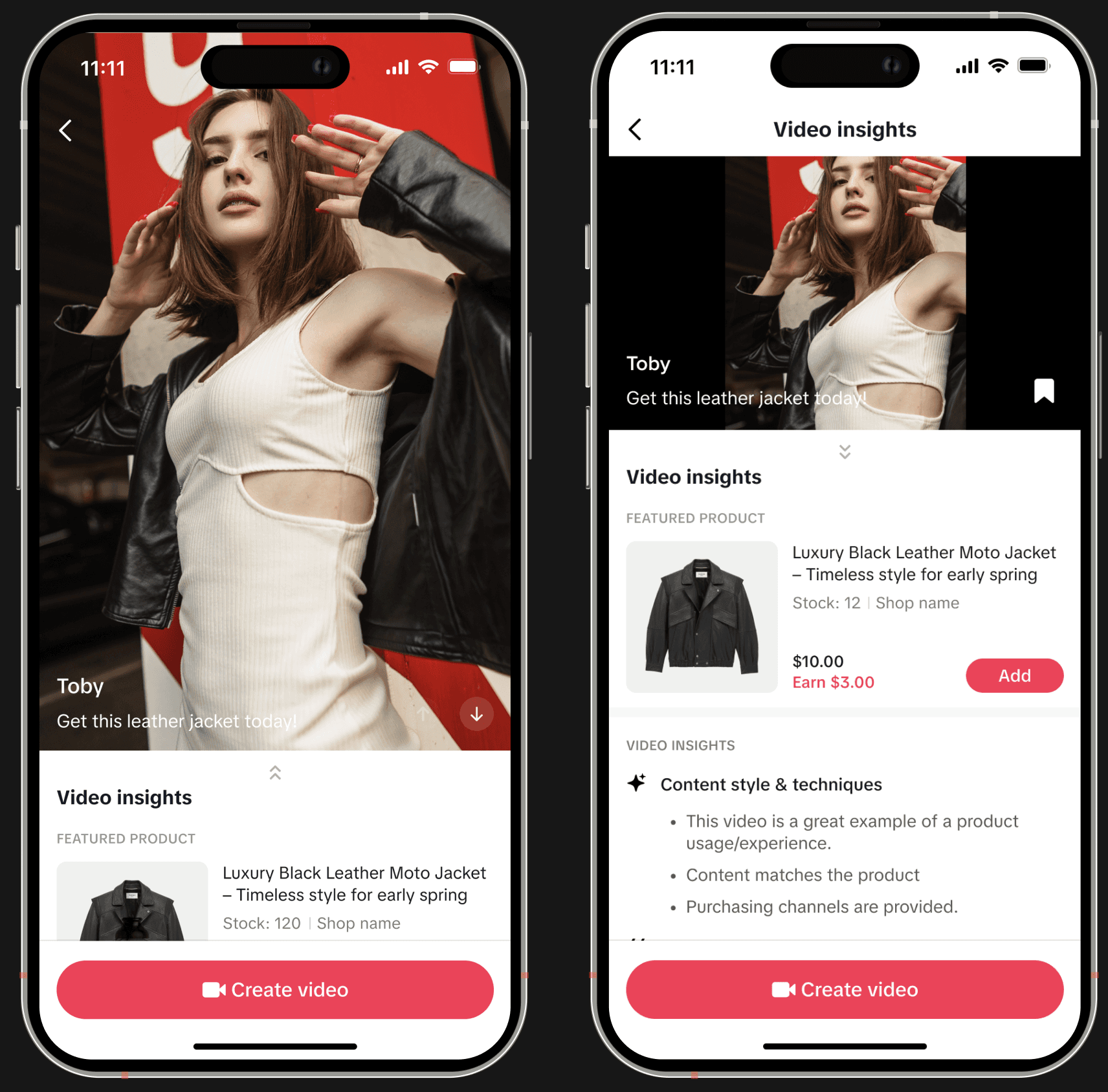 When creators open a video, they see product info, key metrics, and AI insights on why it works, making it easier to learn.